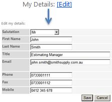 To edit these details simply click on the Edit button for either My Details or My Company Details and enter the relevant information.